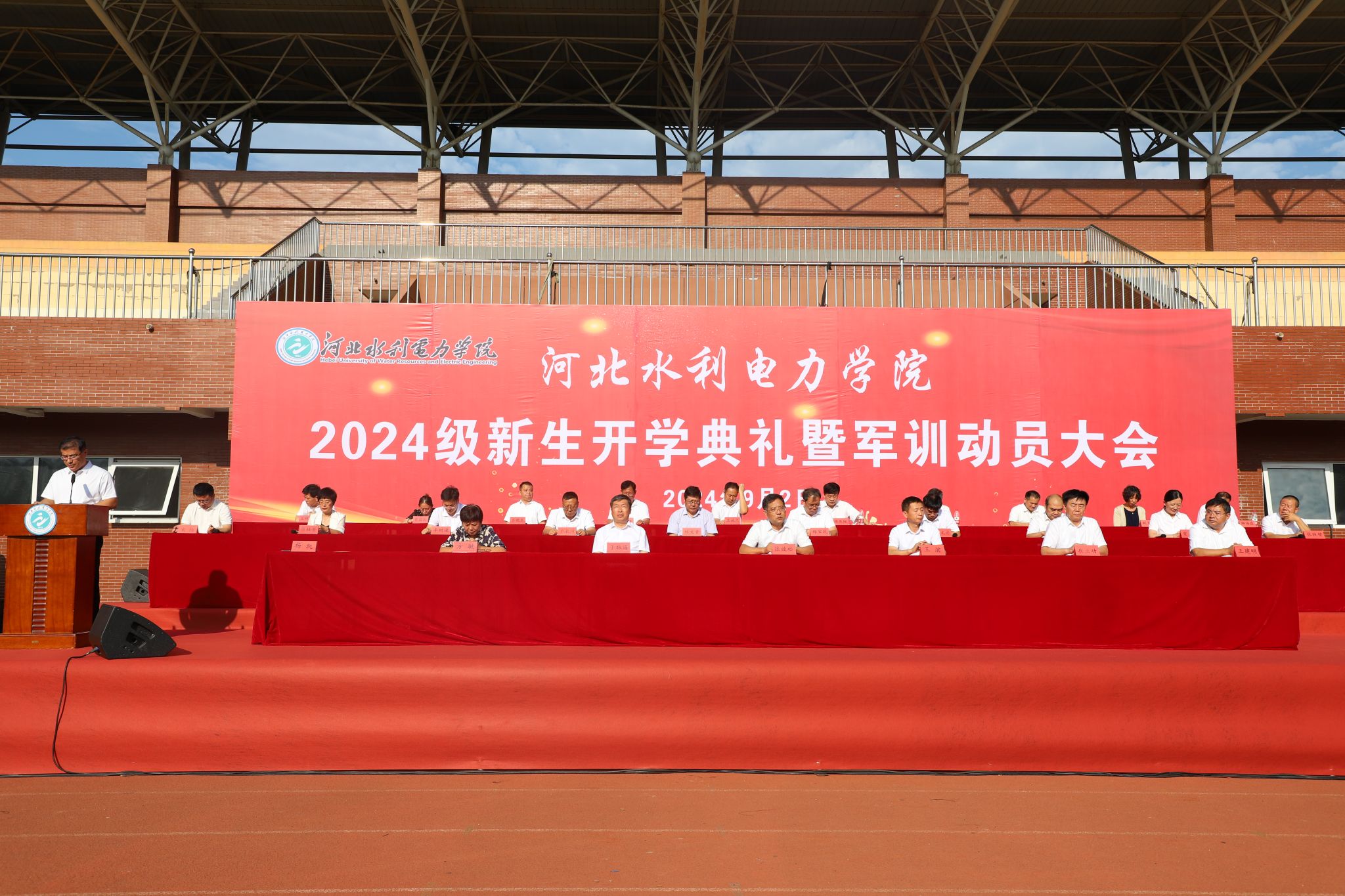 秋光为序,筑梦启航。9月2日上午,我校2024级新生开学典礼暨军训动员大会在体育场举行。全体校领导出席典礼仪式。2428名新生、有关职能部门和教学单位主要负责人、全体新生辅导员及教师代表参加典礼。典礼由副校长杨凯主持。副校长杨凯主持典礼在雄壮的国歌声中,五星红旗冉冉升起,全体师生肃立注目,仪式正式拉开序幕。典礼仪式上,党委书记张效松为军训团授旗。党委书记张效松为军训团授旗党委副书记、校长王滨讲话典礼伊始,八系主任依次寄语,...