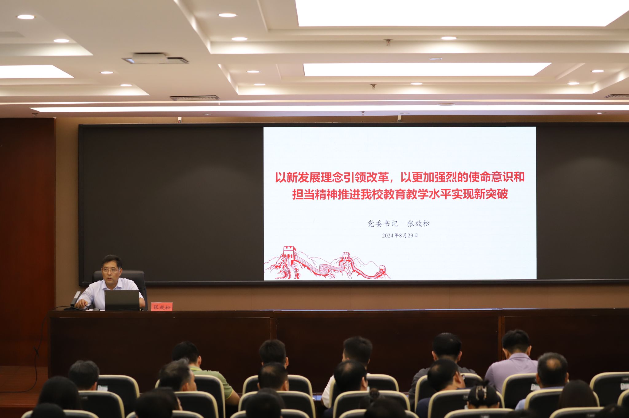 为深入学习领会党的二十届三中全会精神,汲取奋进新征程的时代伟力,8月29日下午,党委书记张效松在弘文守正楼九楼报告厅为全校师生宣讲党的二十届三中全会精神。宣讲会由党委宣传部长、统战部长于书忠主持。党委书记张效松宣讲党的二十届三中全会精神张效松从全会的基本情况、深入学习领会习近平总书记在党的二十届三中全会上的重要讲话精神、充分认识新时代新征程深化教育综合改革的重大意义、深刻认识党的十八大以来教育综合改革取得的显著成效、...