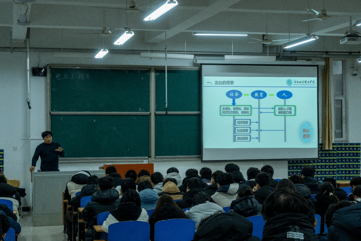 为提高大学生的综合素质,培养创新能力,为学生的成长和发展提供有力的支持和指导,12月13日下午,电力工程系主任李文才于创新楼101教室举办主题为“当代大学生发展的核心素养”的讲座活动。李主任从大学生核心素养出台的背景、核心素养内涵以及如何实践落实核心素养三个方面进行了深入浅出的讲解。他指出,十八届五中全会提出了五个发展新理念,把“创新发展”排在首位,明确指出了一个国家和民族的创新能力,从根本上影响决定国家和民族前途命运。...