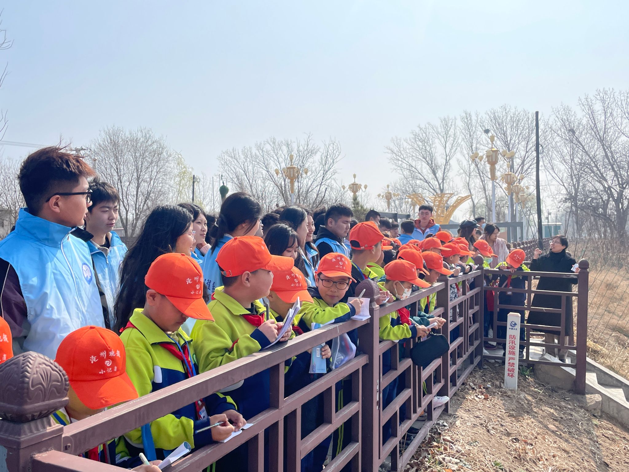 活动伊始,水利工程系副主任王凤春给大朋友和小朋友们介绍了大运河上的穿运工程——南排河倒虹吸工程,通过虹吸原理,使得南北走向的大运河和东西走向的南排河顺利穿运、互不干扰,让同学们了解到水利工程的魅力。接着,我校水利工程系学生与上海路小学学生“结对”参观了沧州水利文化展示馆,学习了沧州人民尊重自然、改造自然,把严重水患之地建设成人水和谐共生幸福之城的奋斗历程。活动中,大学生们为小学生们讲解水利知识,小学生们认真记笔记、做总结,师生们在这里充分感受了新时代的治水精神。最后,师生们来到了观鸟台,欣赏了“白鹭成群,芳草萋萋”的美景。近年来,随着沧州市大运河文化带的建设,水更清了、树更绿了、生态更美了,“人与自然和谐共生”的生动画面在这里充分展现。