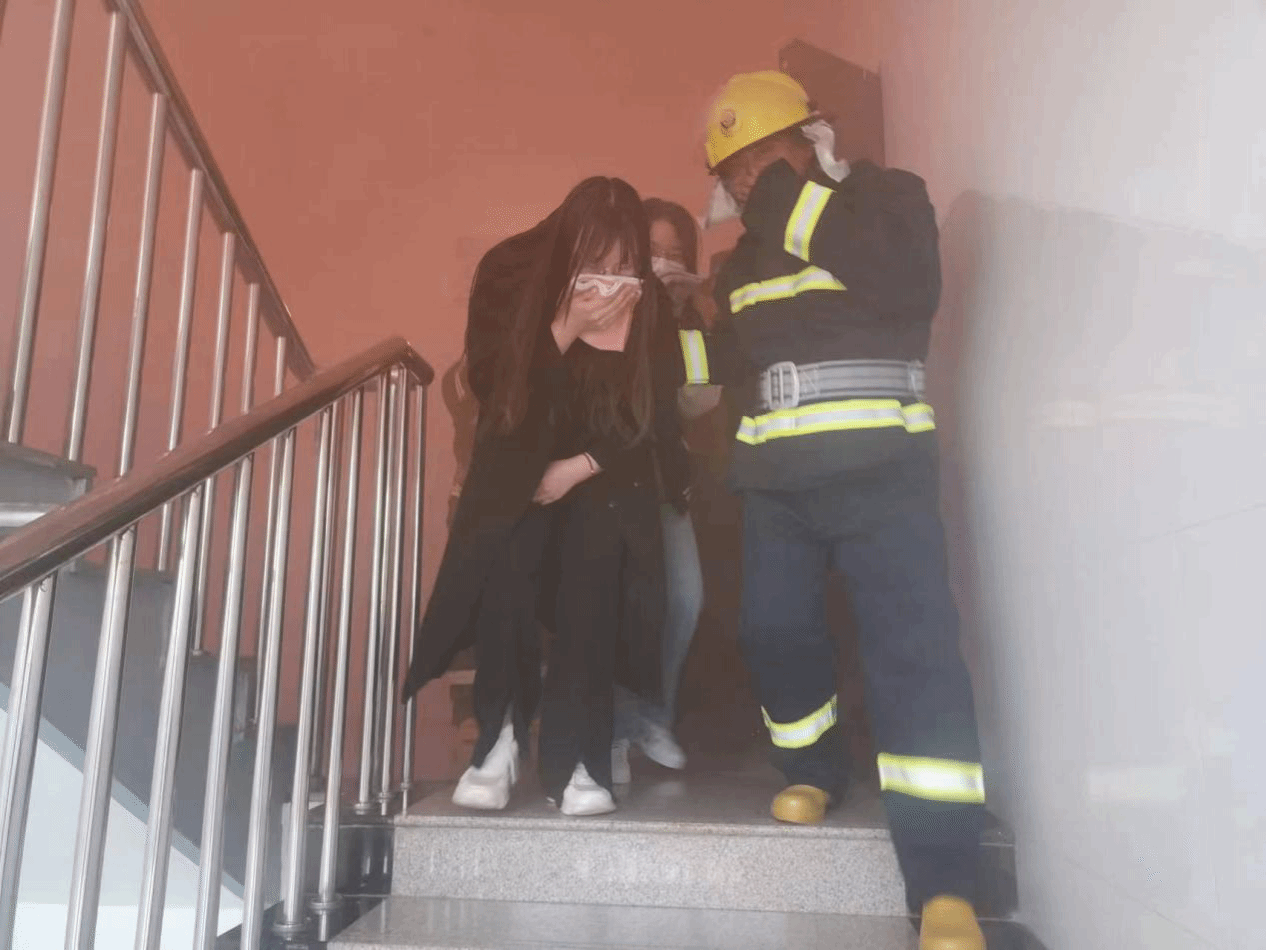 下午2:40,火灾疏散逃生演练正式开始,随着刺耳的警报声响起,三号公寓3、6、9楼被浓烟笼罩,学生发现火情,立即拨打消防控制室电话,消防控制室值班人员立即确认火灾报警联动控制开关处于自动状态,并虚拟报火警,同时通过电话向学校安全工作处处长欧仁辉报告火情,随后,一名前往现场,并联系微型消防站消防员前去灭火。