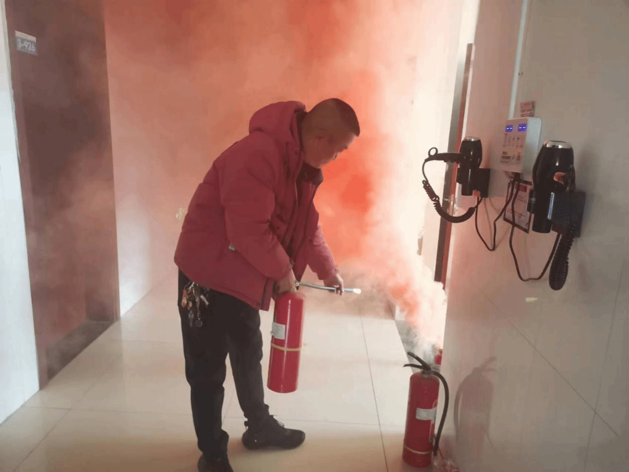 点评结束后,赵江奎和8名消防员通过解说和现场演示的方式为师生员工详细讲解了灭火原理、四种灭火方法、灭火器的种类和使用方法,随后,全体参演人员使用灭火器进行了灭火。