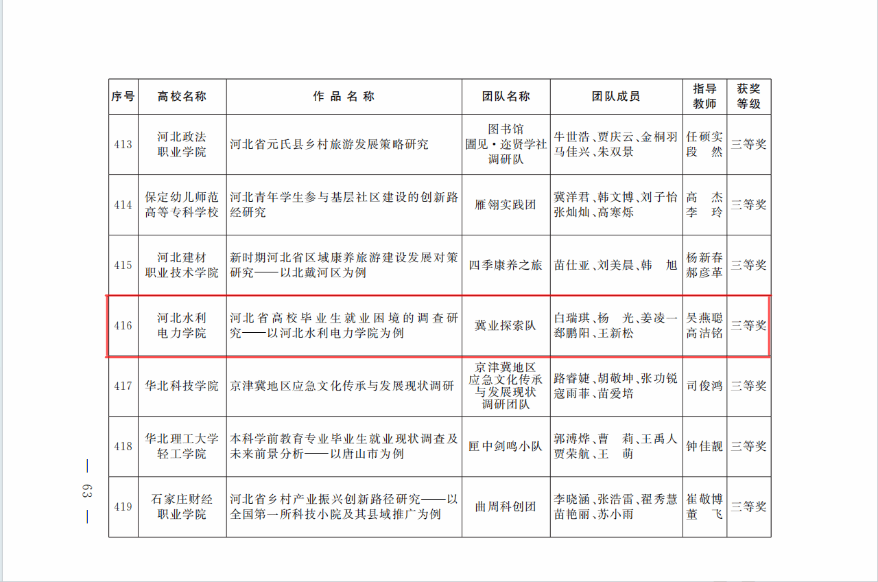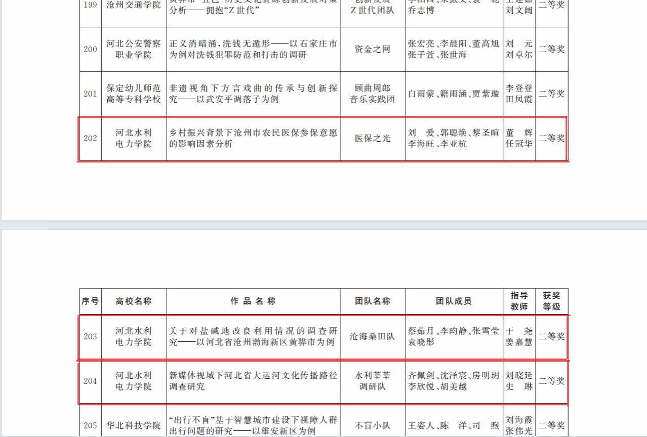 近日,共青团河北省委、河北省社会科学院以及河北省学生联合会公布了关于2023-2024年度河北省大学生“调研河北”社会调查活动情况,我校沧海桑田调研队《关于对盐碱地改良利用情况的调查研究——以河北省沧州渤海新区黄骅市为例》、水利莘莘调研队《新媒体视域下河北省大运河文化传播路径调查研究》、医保之光调研队《乡村振兴背景下沧州市农民医保参保意愿的影响因素分析》分别在活动中荣获二等奖,冀业探索调研队《河北省高校毕业生就业困境的调查研究——以九游官方网页版为例》荣获三等奖。调研活动自2024年1月开展以来,校团委精心谋划部署,广泛宣传动员,吸引了本校32名教师、100多名同学参加调研,共计报送27个参赛项目,最终4个项目顺利结项并获奖。