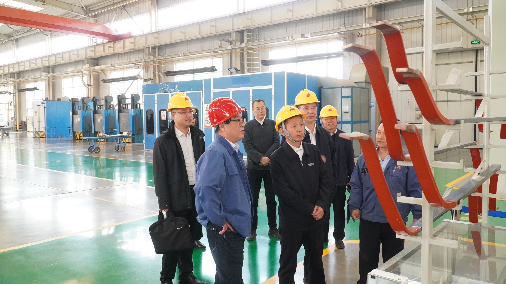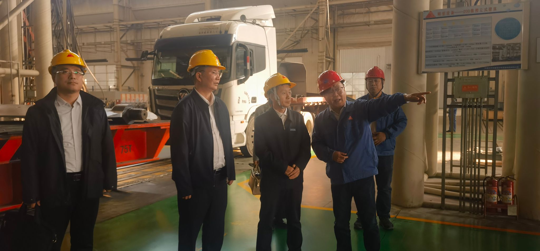 王滨一行首先参观了集团旗下核心企业-天发重型水电设备制造有限公司各生产车间、水力开发与试验中心及成果展厅,现场体验了企业严格的质量控制体系和高效的生产管理模式,感受到了天发重型水电在国内水轮发电机组设备领域的技术优势以及行业影响力。