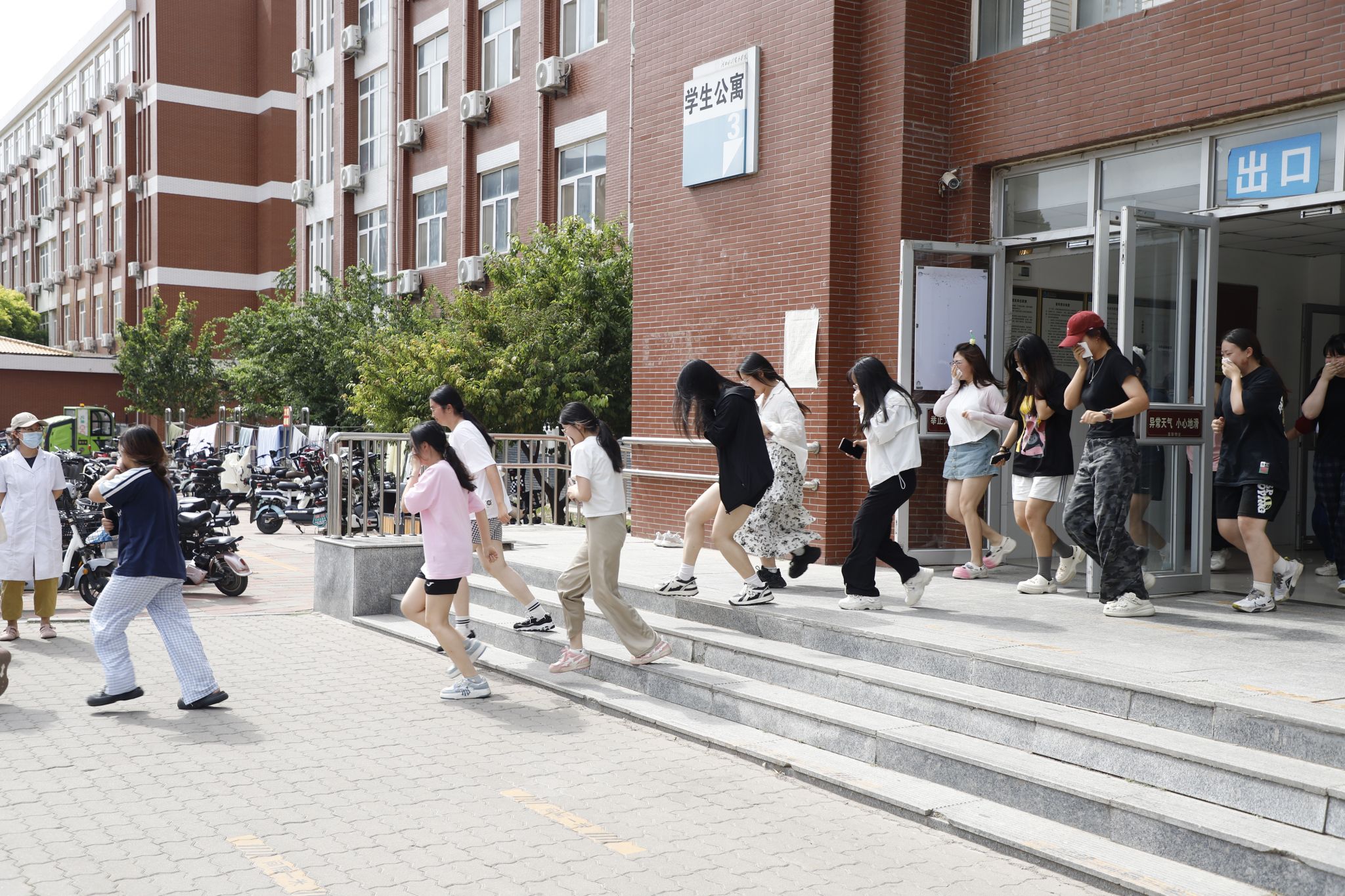 为进一步增强师生消防安全意识,提高师生自护、自救、抵御灾害事故能力,确保师生人身安全,6月5日下午,我校在三号学生公寓开展2025年春季学期灭火和应急疏散演练活动。党委书记张效松,党委副书记、校长王滨,党委副书记崔立功,副校长杨凯,纪委书记鲁增秋到场指导。