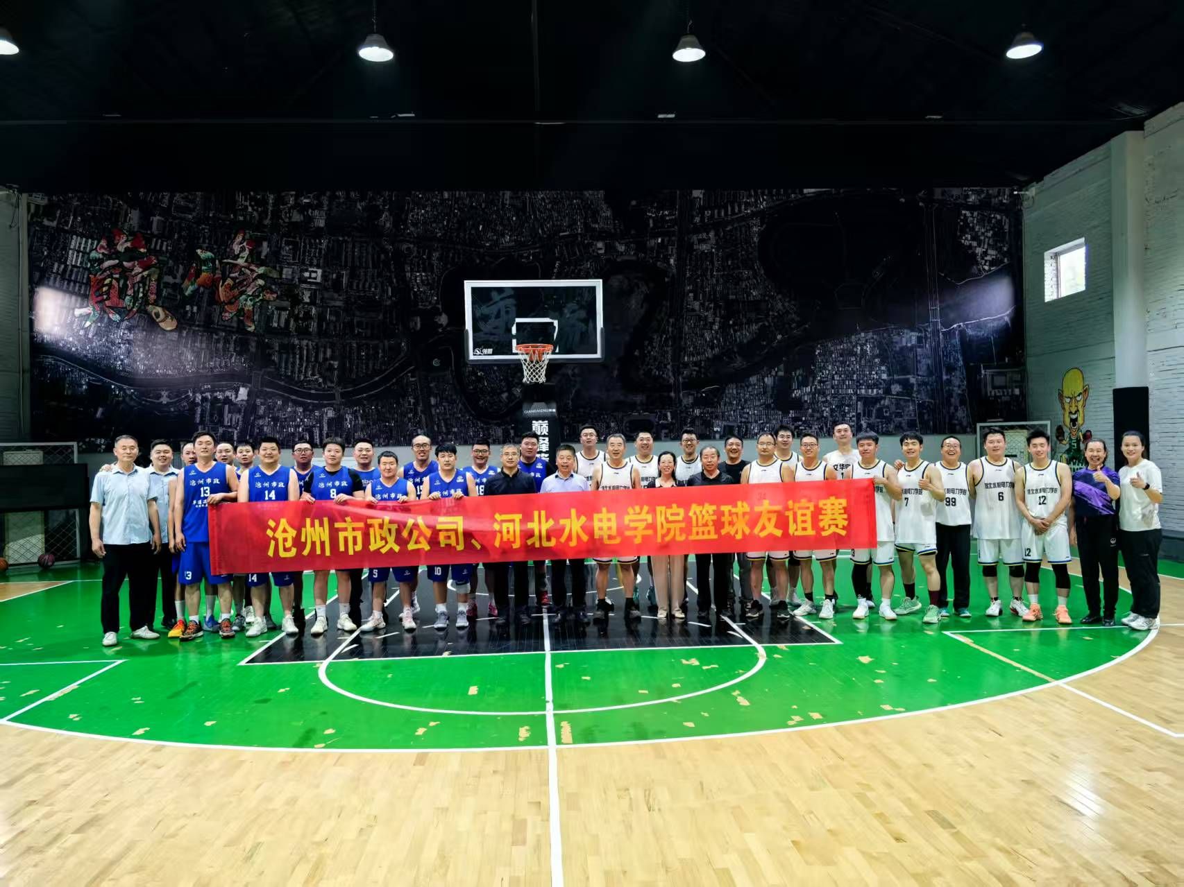 在校工会和沧州市市政工程股份有限公司工会的支持下,5月27日,我校篮球协会与沧州市市政工程股份有限公司篮球队联合举办了一场篮球友谊赛。我校教职工篮球协会于今年4月成立,目前有会员近40人,本次比赛是协会第一次正式与外单位的友谊赛,副校长杨凯、董志良,工会常务副主席伊淑霞、副主席崔建军,教职工篮球协会会长欧仁辉以及沧州市市政工程股份有限公司副总经理曹军想、工会主席李艳红、篮球队领队孙方宇亲临现场指导。